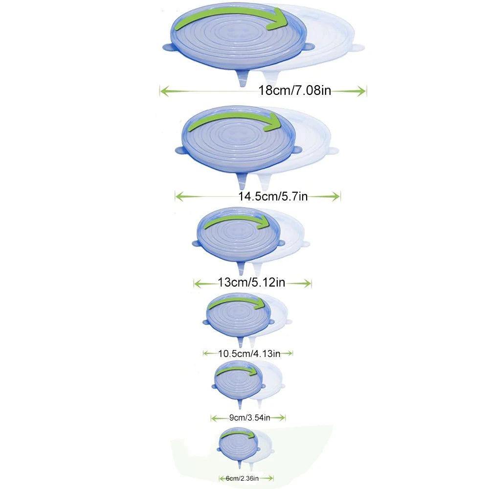 6Pcs Food Grade Silicone Preservation Cover Reusable Airtight Food Universal Dish Stretch Round Lids For Kitchen Accessories