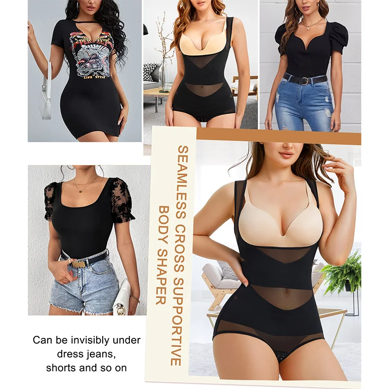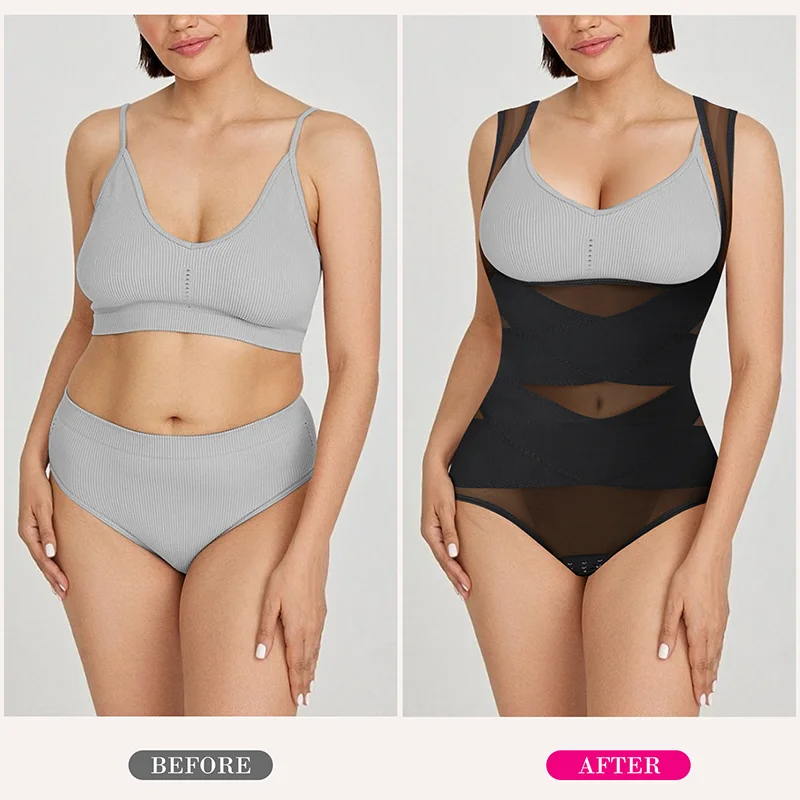 This open bust shapewear with criss-cross double layers fabric on the midsection compresses excess fat, accentuates hourglass curves, and provides tummy control like a waist trainer for women. The X-shaped back design offers support, coverage, and improved posture while reducing rolls and back fat bulges. Slimming body shaper for women sculpture waistline to help have an hourglass look and it won't roll down due to the sturdy straps. |